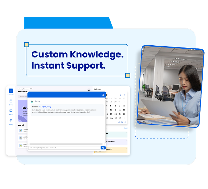 Buddy is an intelligent chatbot providing tailored answers anytime, anywhere—whether helping podcast listeners find episode details or answering HR questions from company policies. Customize Buddy to fit your needs!
