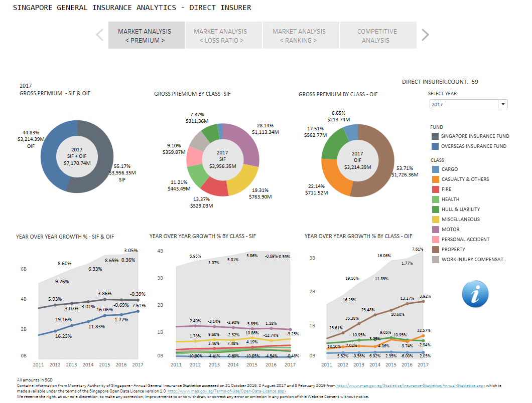 We have published our first installment of Industry Analytics initiatives powered by CUBUS, SeaTech’s Analytics Engine for insurance industry. These interactive dashboards cover Singapore’s and Indonesia's general insurance/reinsurance industry. Utilizing the latest data visualization tools, the dashboards present industry analytics in an easy to follow format. It allows users to grasp market trends, conduct competitive analysis and benchmarking, and review industry results at a glance.
